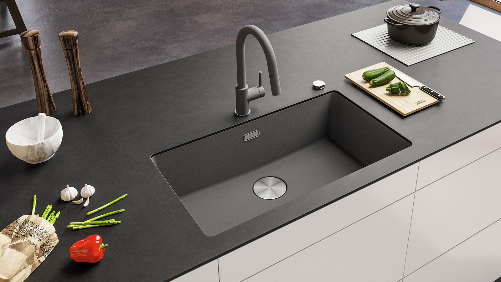 En mesterlig blanding af stil, materialer og multifunktionelle komponenter designet til at hjælpe dig med at få mest muligt ud af dit køkken. Hver detalje er målrettet integreret for at opfylde og guide din arbejdsgang og gøre dit køkkenliv, som du ønsker.