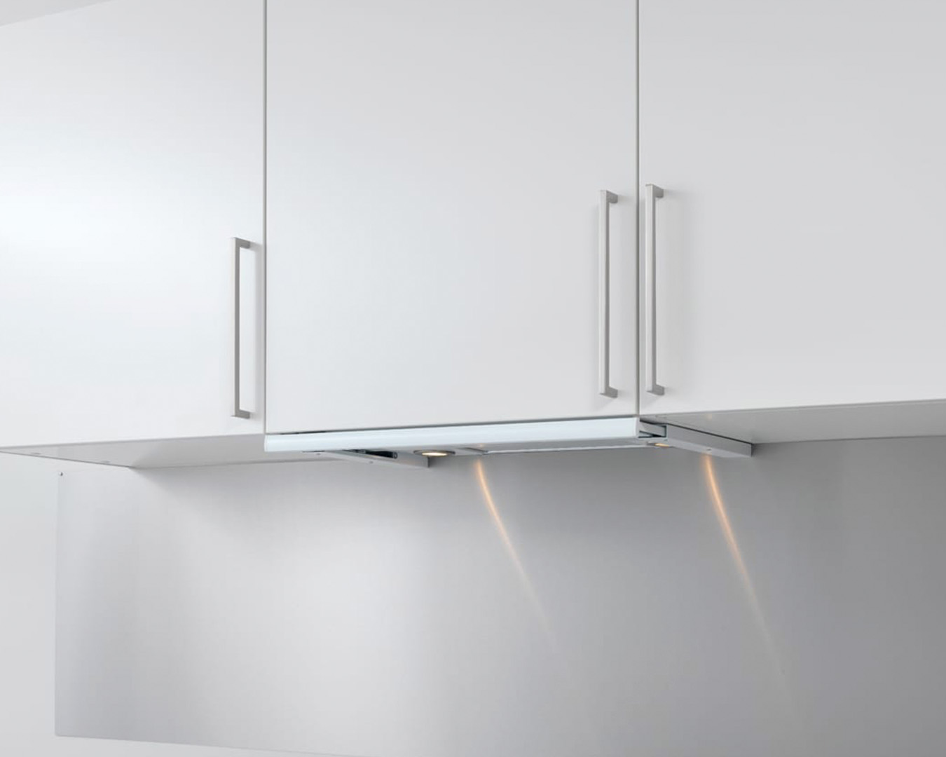 392-16 Slimline er en smuk, slank slimline med god LED-belysning, der er tilpasset de fleste ventilationssystemer. Leveres med sølvfarvet frontliste og kan monteres i skabe med eller uden bundplade.