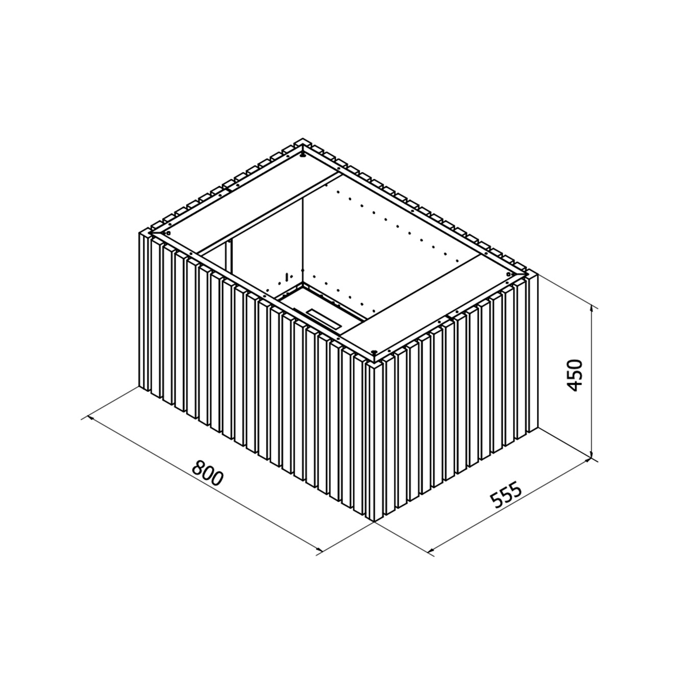 Groove Sense frithængende emhætte fås i alle farver og valgfrit PVD-metal. Lamellerne lakeres eller bejdses efter bestilling, og selve emhættens bund kan lakeres i enhver farve eller leveres i valgfrit PVD-metal, både børstet og højglans.