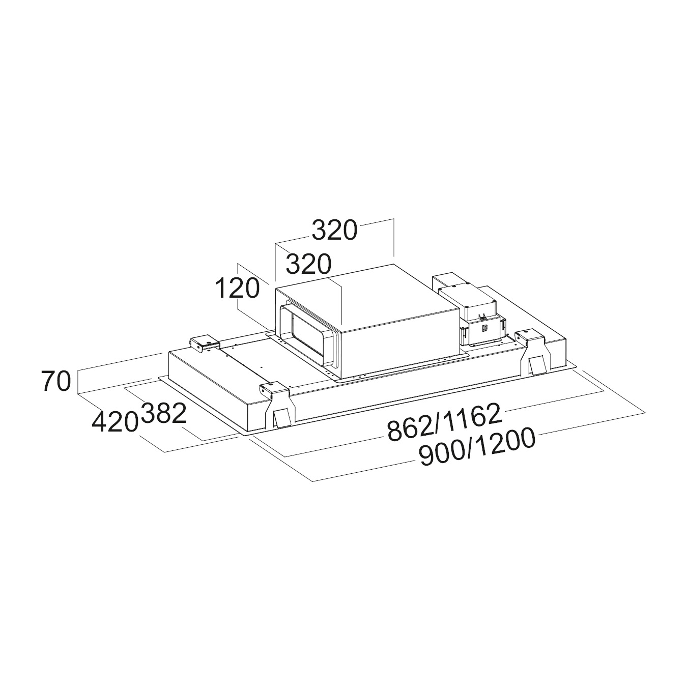 Horizont loftsventilatoren fås kun til normal ventilation, i 90 eller 120 cm bredde, og er et tidløst og stilfuldt valg til ethvert køkken.