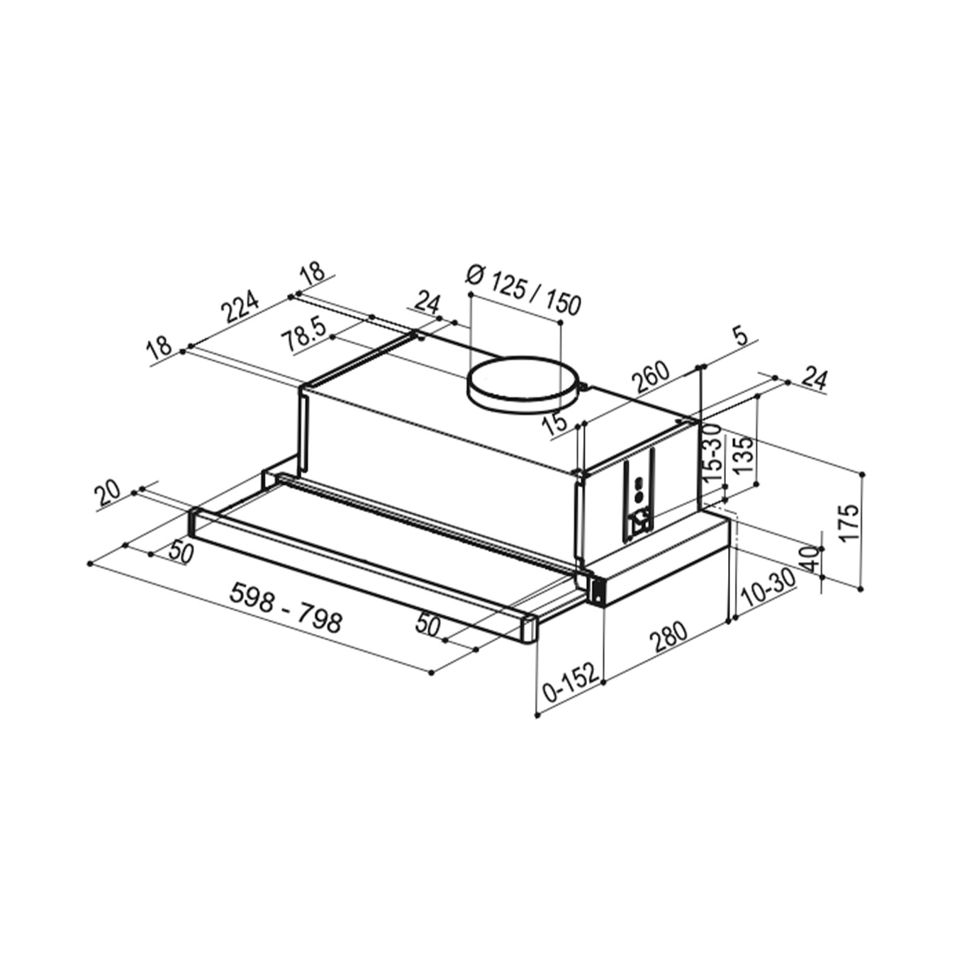 Extractor fan in 60 cm or 80 cm width.
