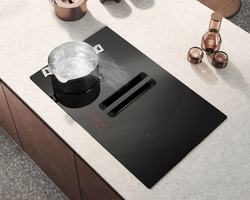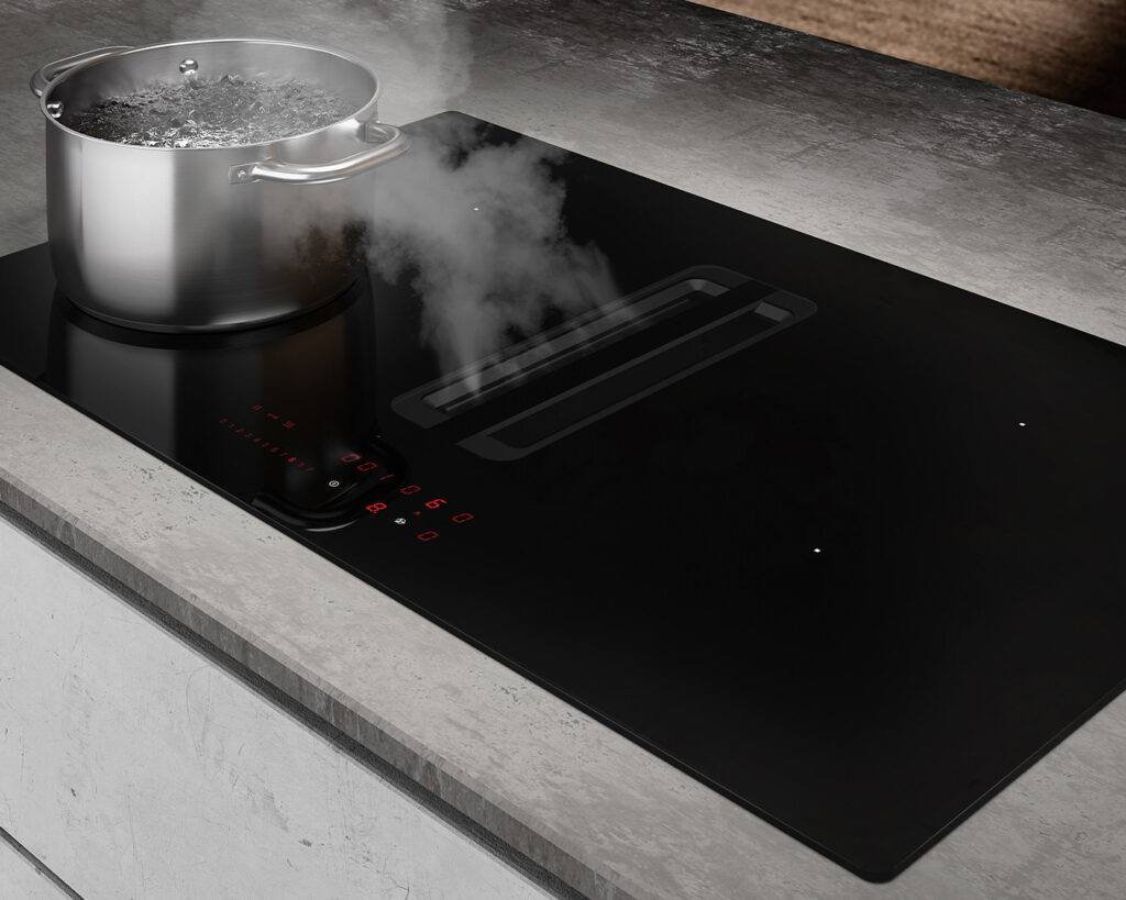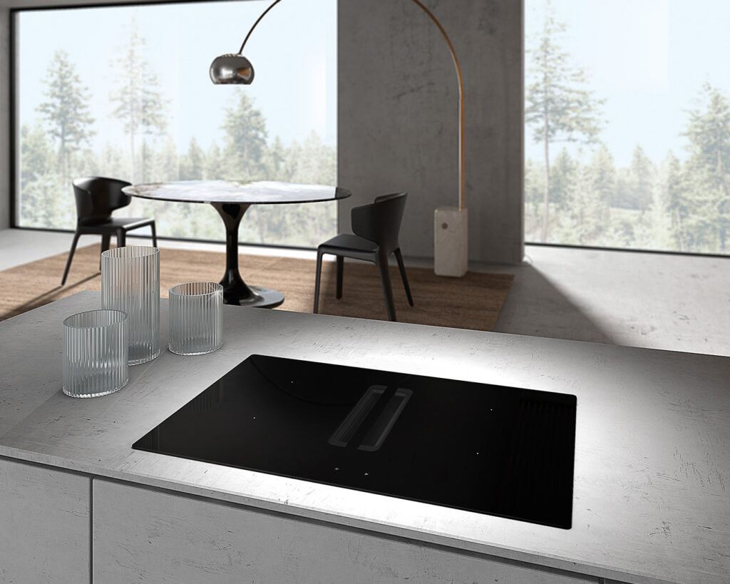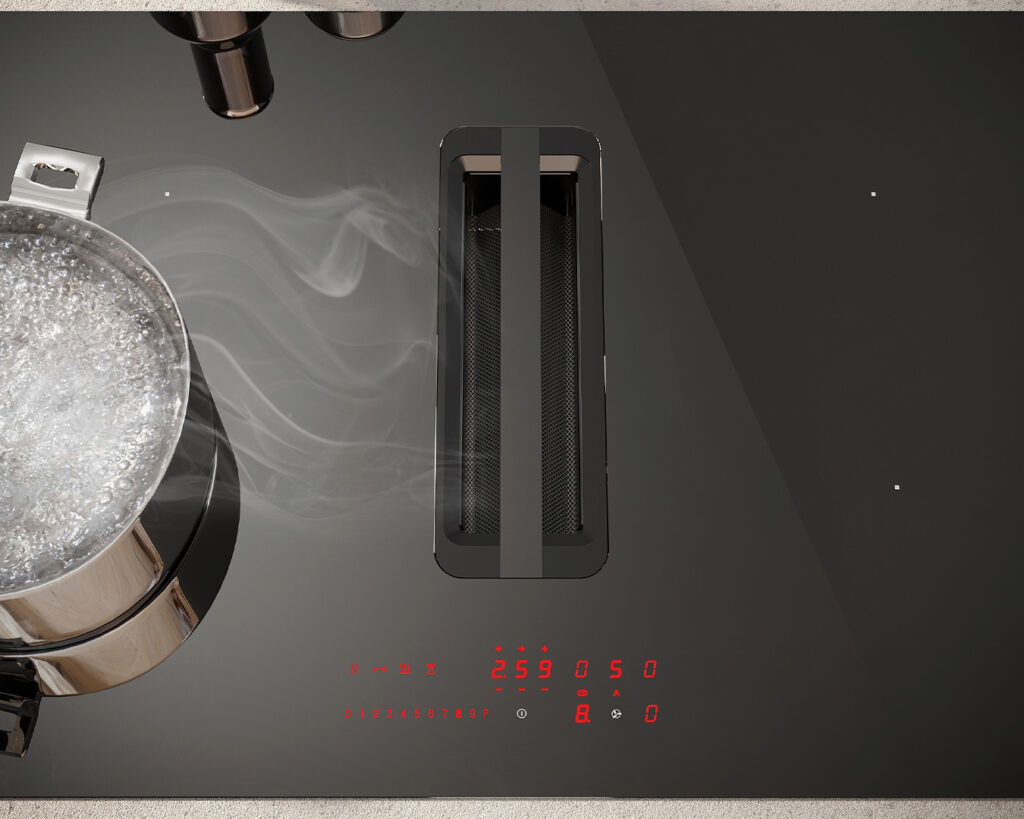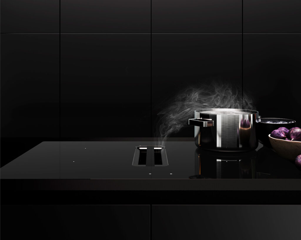 Elegant is an all-in-one hob and hood that boasts a sleek and slim design, leaving plenty of cabinet space. Its powerful bridging cooking zones and moisture-extracting recirculation feature makes it a functional and convenient choice for any kitchen. The intuitive controls allow for easy operation, while the quiet motor ensures minimal noise. The Elegant combohob also features easy-to-clean features for a comfortable and hassle-free cooking experience.