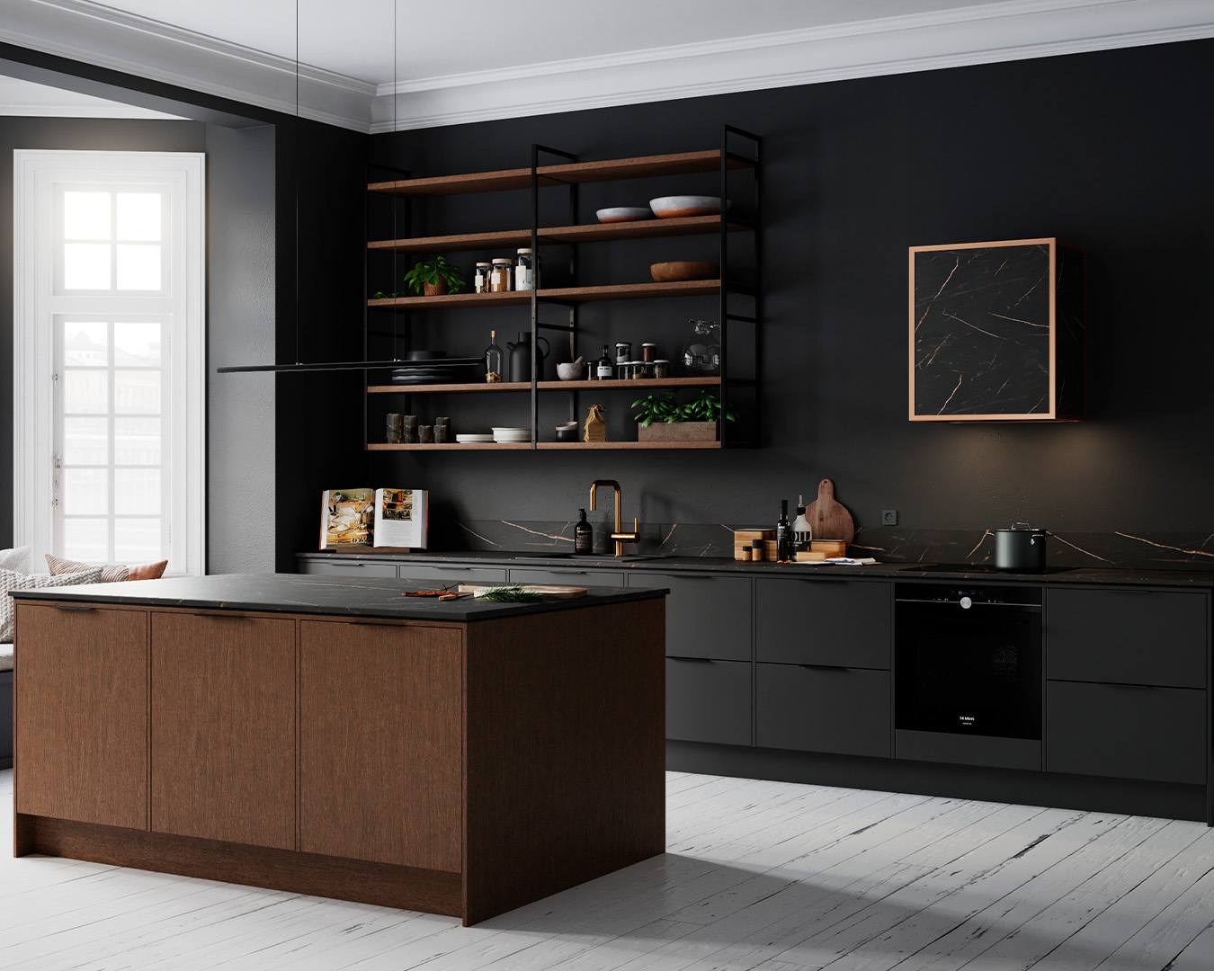 Now you can get the kitchen hood with a choice of Dekton, lacquered MDF, oak or metal plate combined with a stylish frame in a choice of metal or lacquered color.