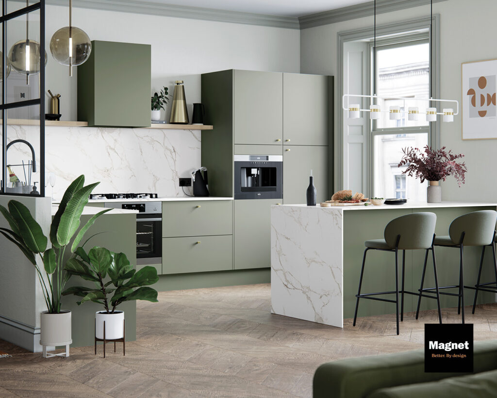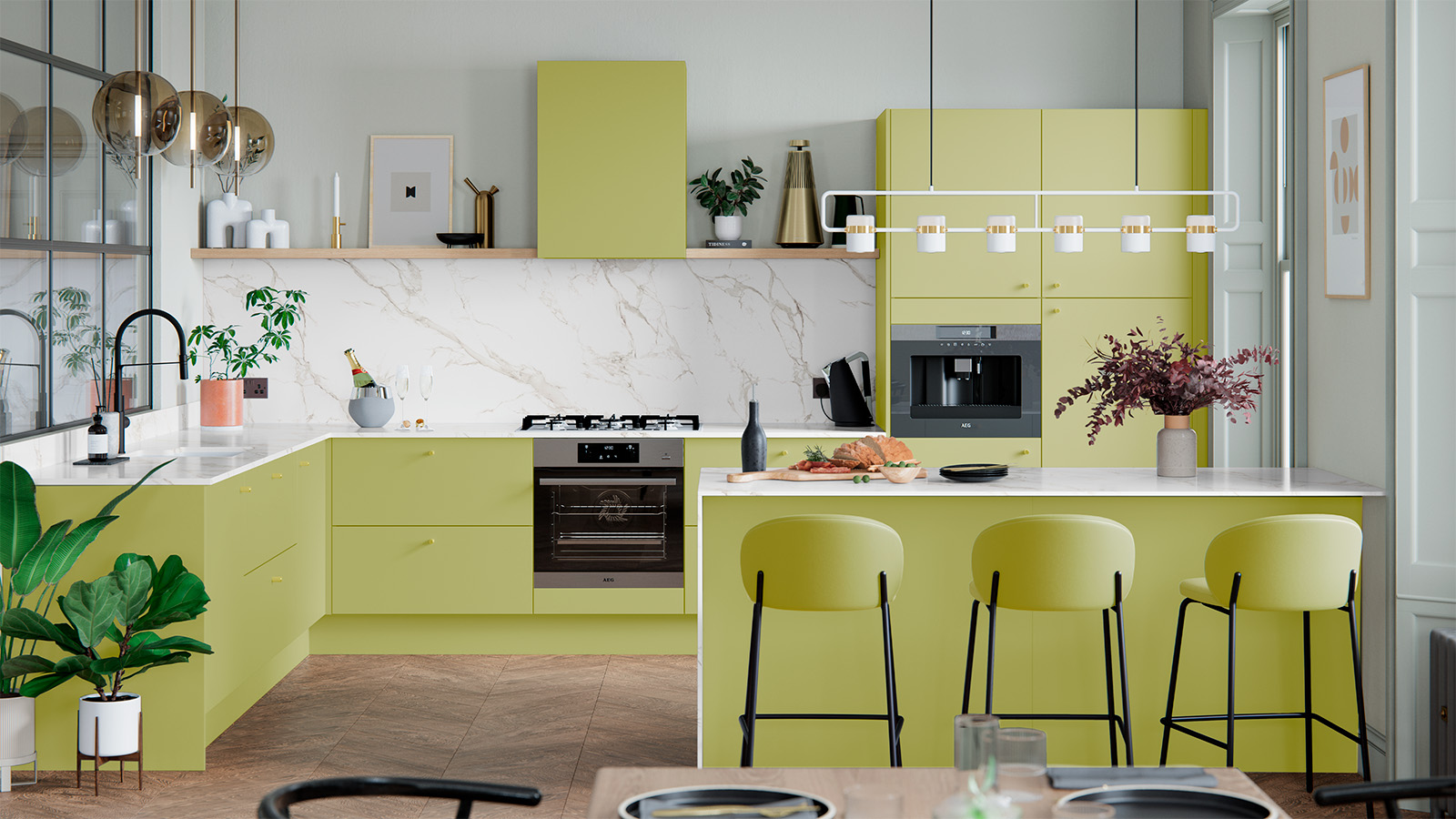 The kitchen hood has a raised base plate for optimal odour capture.