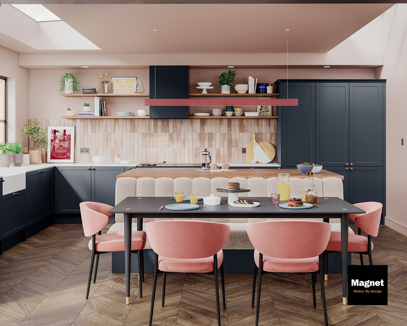 A thousand colors – Yes, it’s actually true. Sky blue, princess pink, emerald green, Ferrari red, white as snow or black as coal! You can pick and choose from trend colors or choose the same color as the kitchen fronts so that the hood becomes part of the whole. The best thing is that a special color costs you nothing*!