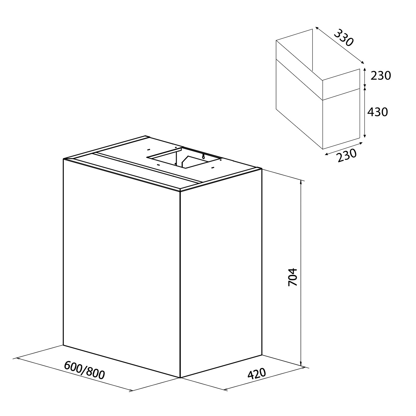 - Custom angled hood without duct (art. no. 9330)