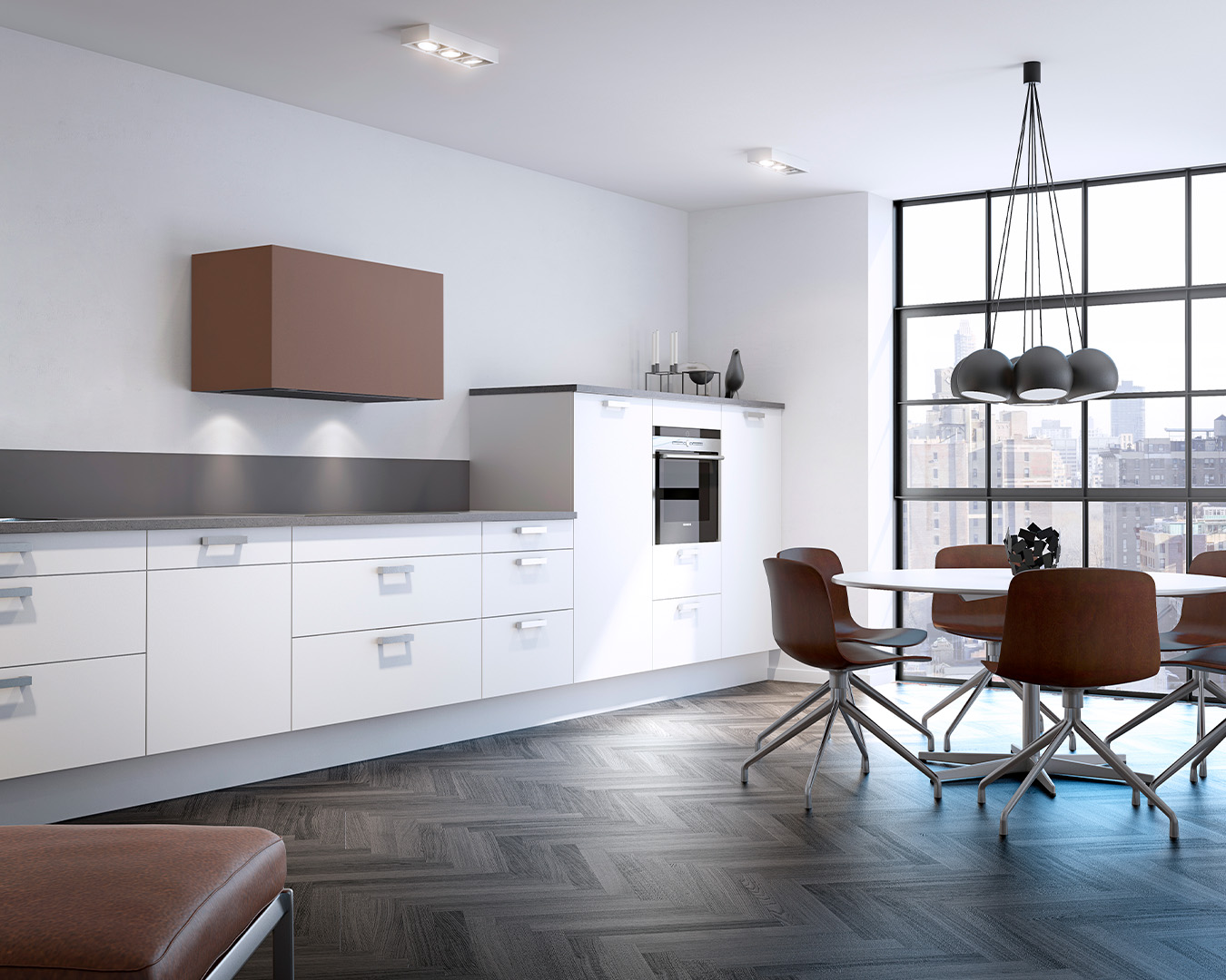 Choose from our four different PVD metals in a brushed finish, or have the kitchen hood lacquered in a color of your choice to match or contrast with the decor or wall color.