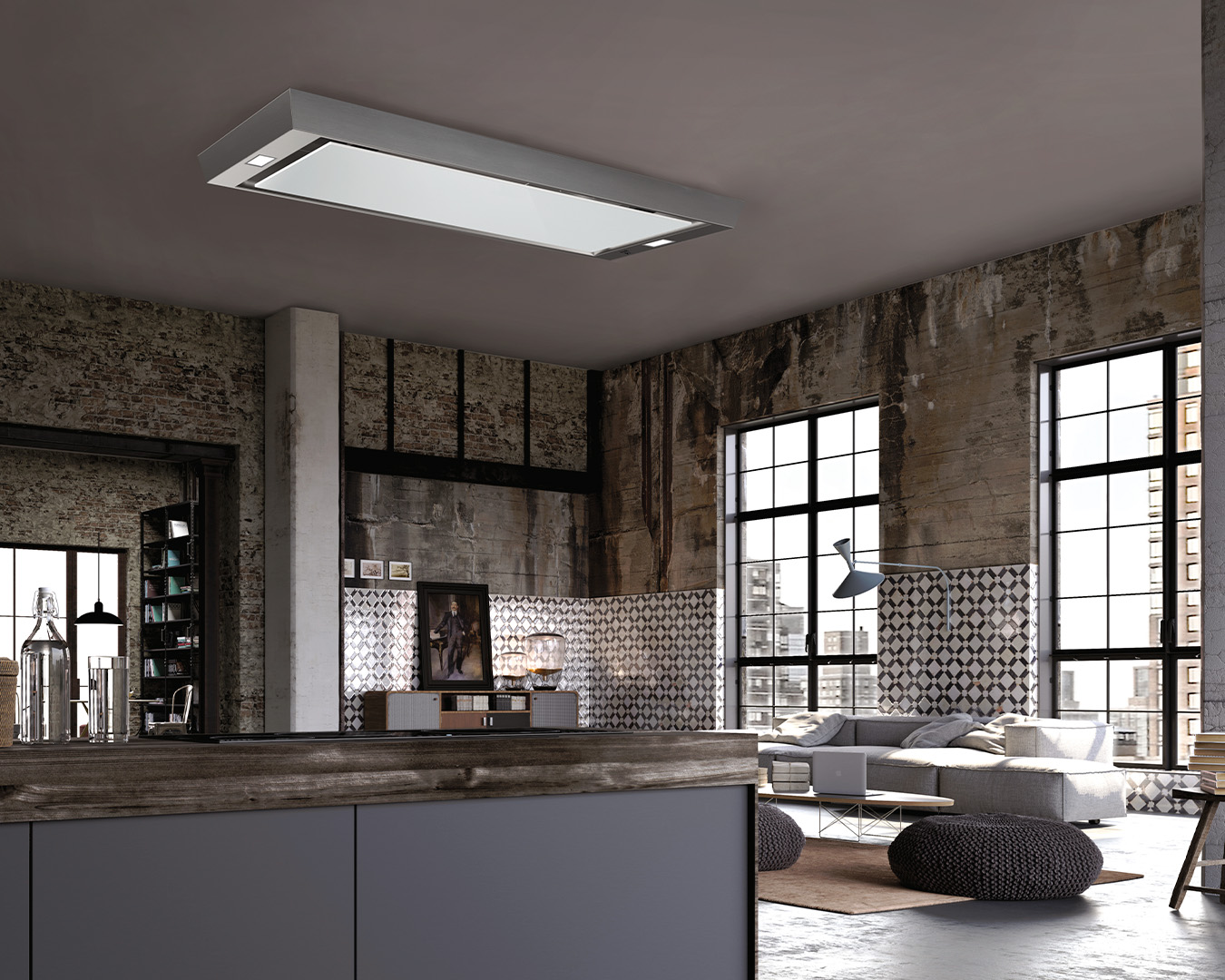 Vision is a powerful ceiling hood that discretely removes the odours and vapours while you cook.