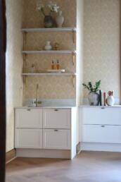 Messing har også den fine egenskapen at det eldes vakkert. Det passer like godt til klassiske elementer som til rene, moderne flater, og skaper en balanse som gjør at kjøkkenet føles lunt og gjennomført – ikke stramt eller kaldt.