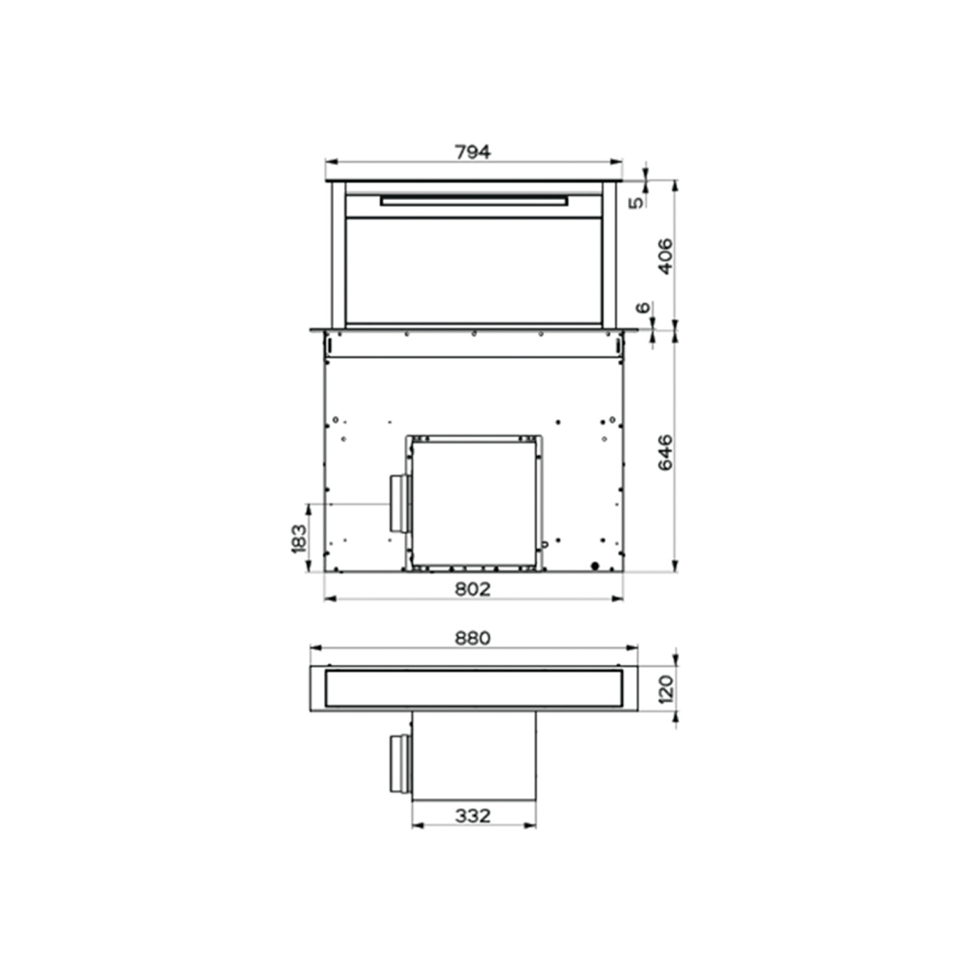 Fabula benkeventilator leveres i 88 cm bredde, og kan leveres med enten sort eller hvitt glass.