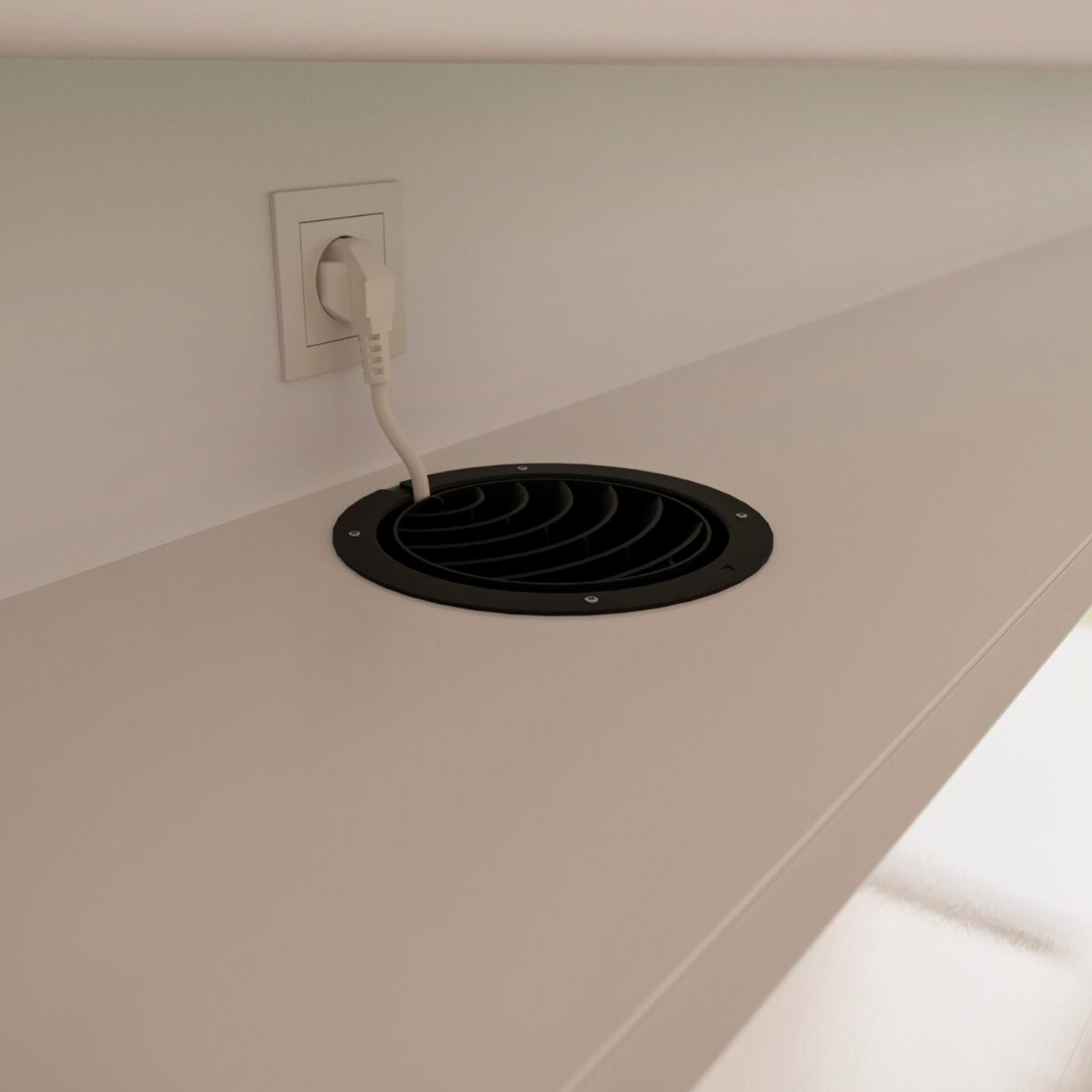 Lufterist til kullfilter i sort utførelse.