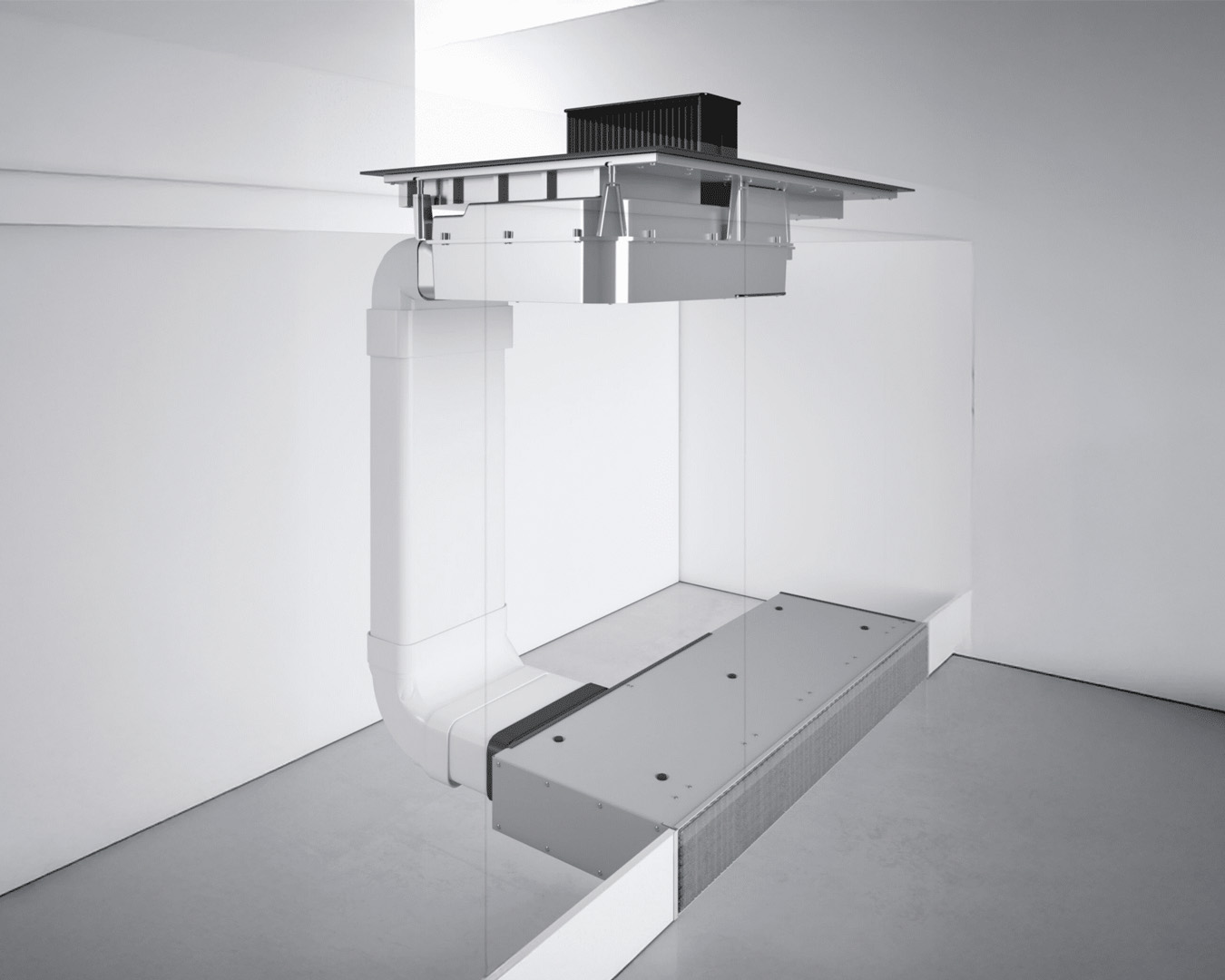 Resirkulasjonssett til utgått benkeventilator One og One Go. Inneholder boks, kanaler og filter.