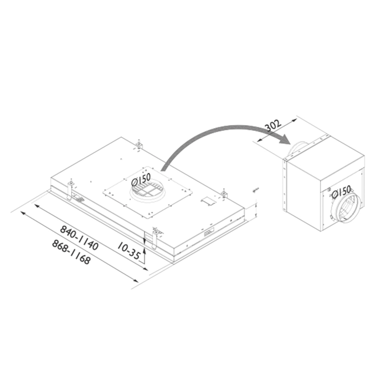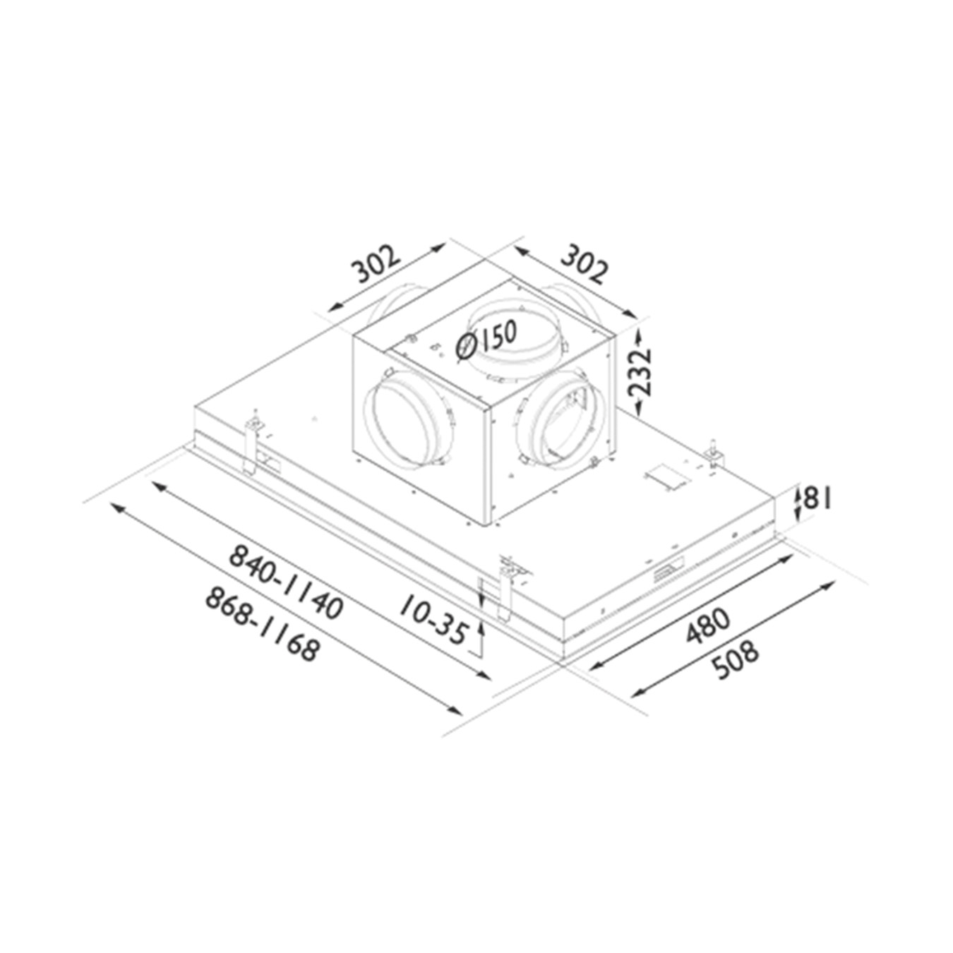 | Dimensjon uttak | 150 mm |