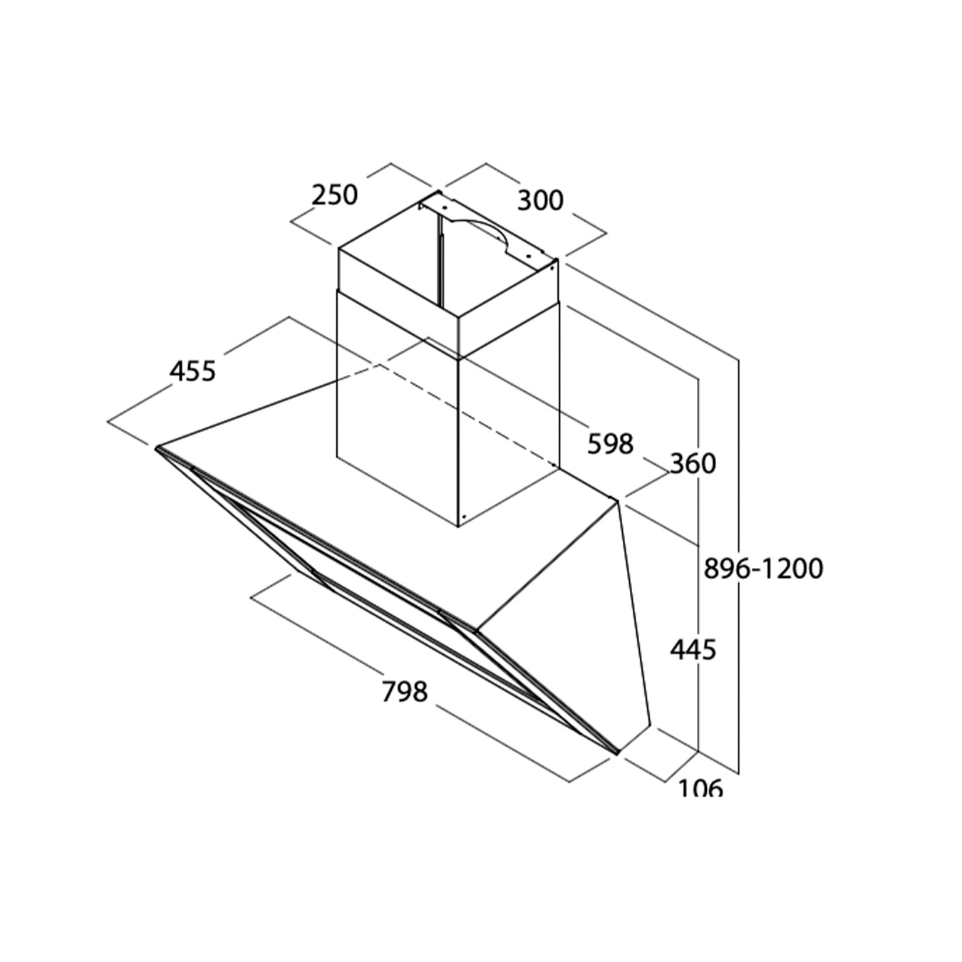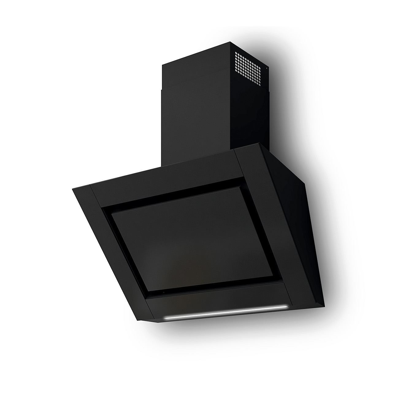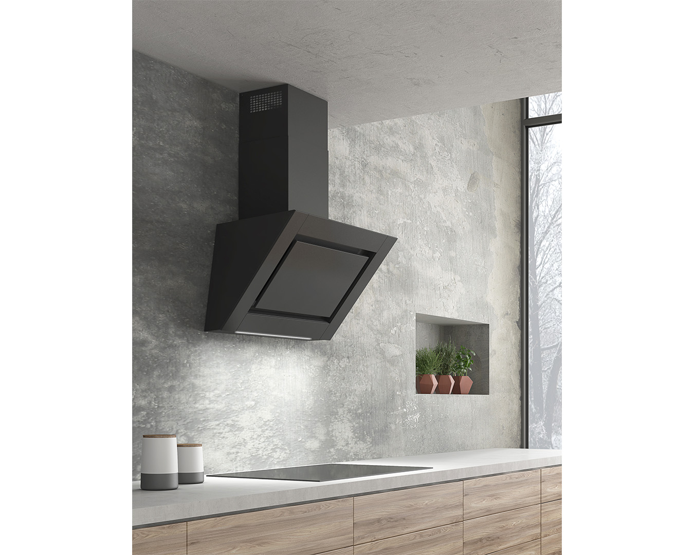 Unique veggmontert kjøkkenhette leveres som standard med matt sort front- og bakpanel.