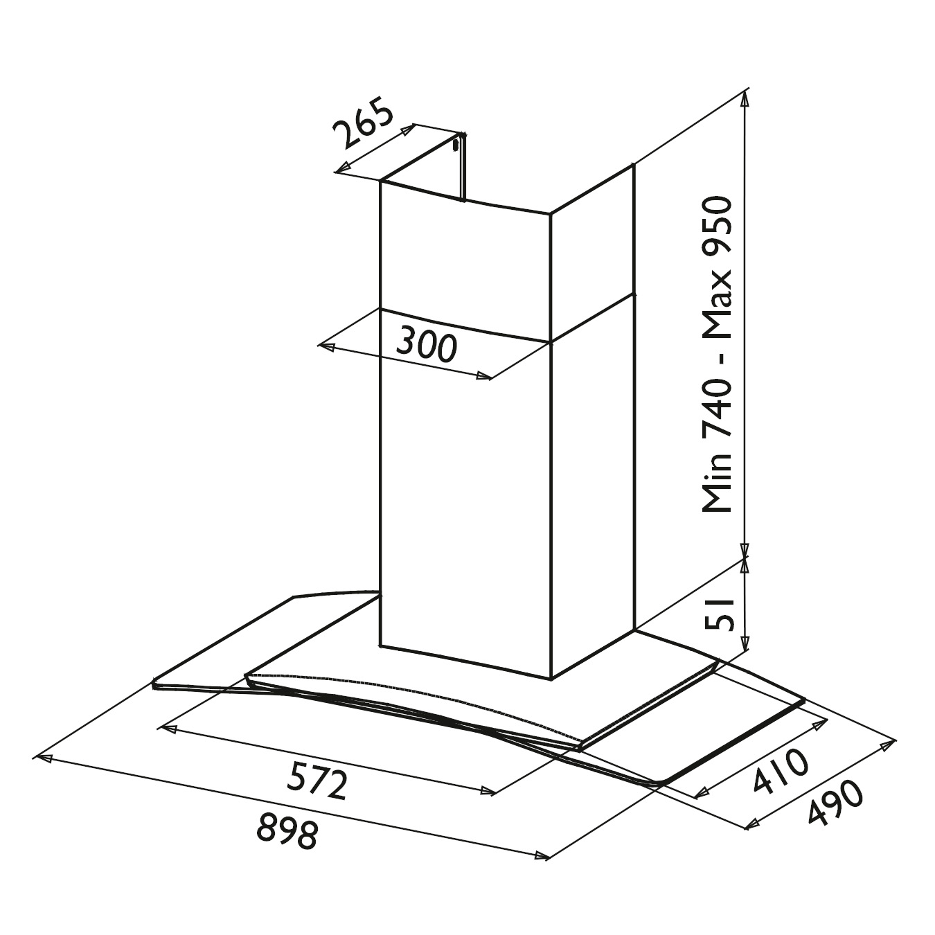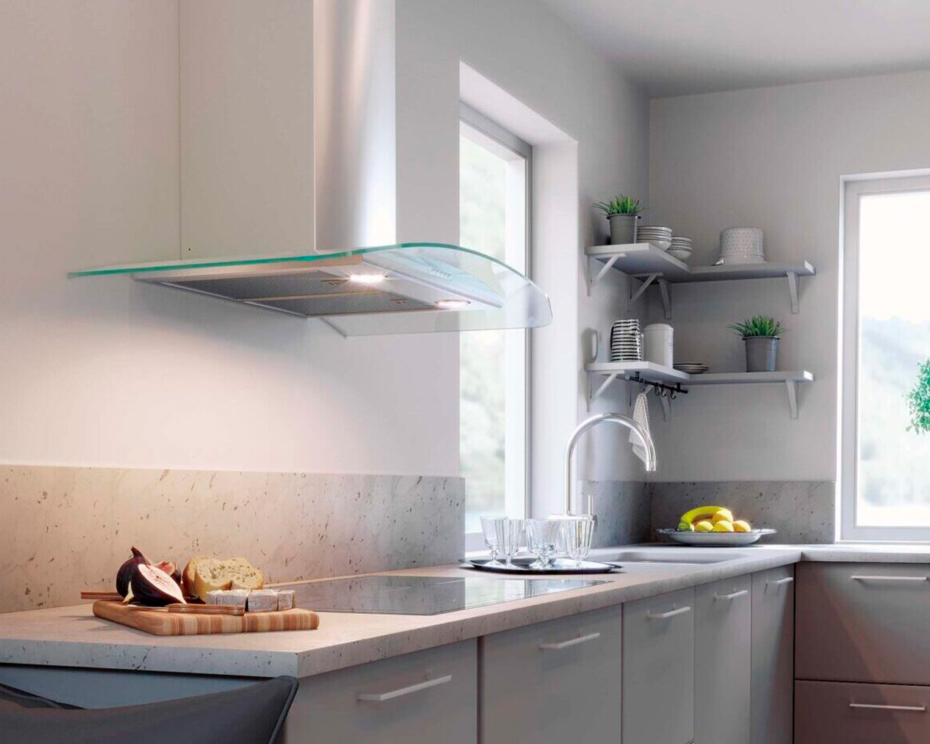 Sigma väggmonterad köksfläkt finns i 90 cm bredd och kan placeras fritt på väggen. Det effektiva fettfiltret är enkelt borttagbart och kan diskas i diskmaskin i max 50 grader.
